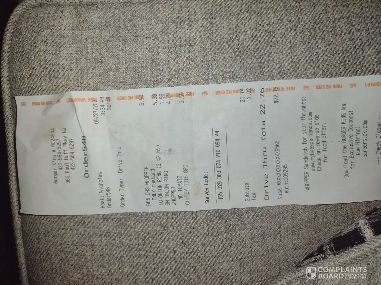 Read full complaintprice of cheese on a bk whopper, and attitude of cashier