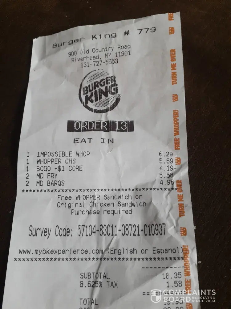 Read full complaintWhopper Meal for Two $8.99 plus NYS Sales Tax