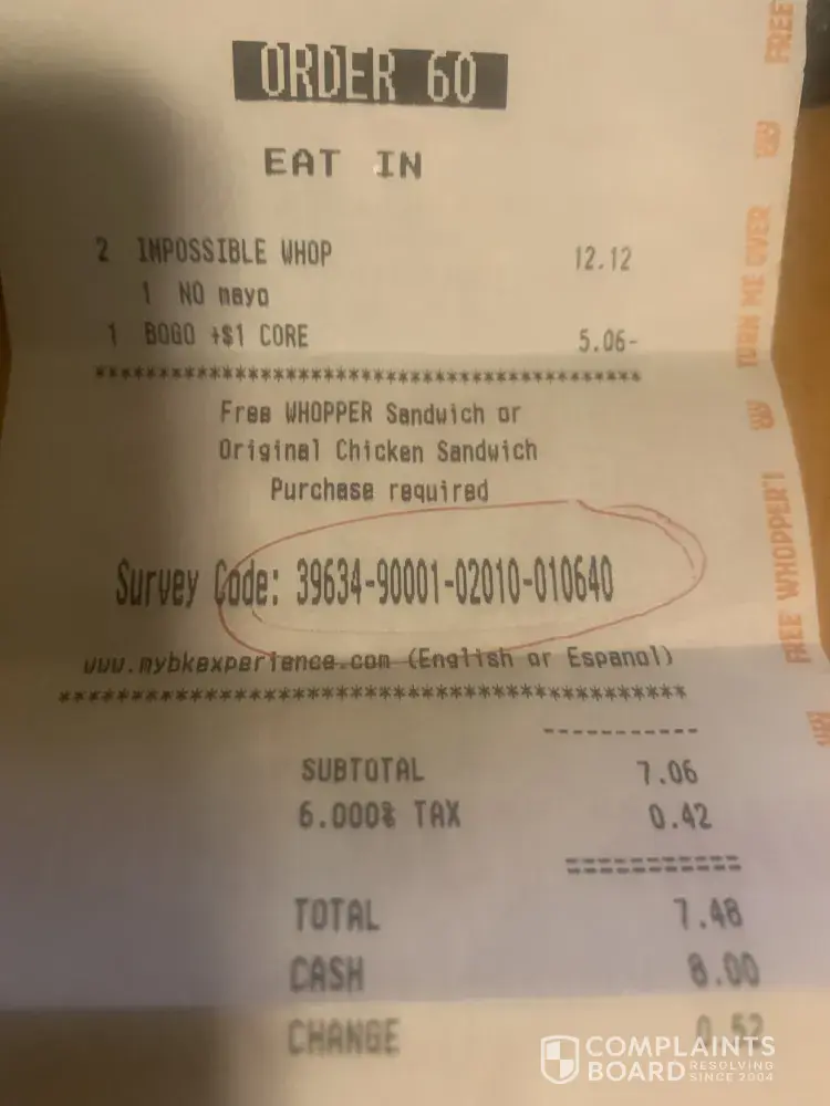 I called Burger King customer relations about this, was told your system was down due to being updated and the info would be sent to "Our Team that handles this" It has been a week and have heard nothing. It's not the amount that bothers me it is the lack of response, and the embarrassment explaining to our customer it was a mistake.