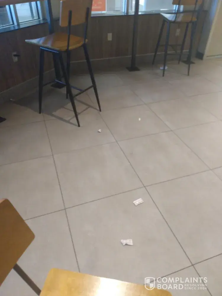 she proceeded to sit down...he finally came over and was so upset that as he cleaned the table he had tossed i believe 6 ketchup packets from the table to the floor. one of which had hit me...30 minutes later when i had left they were still on the floor...