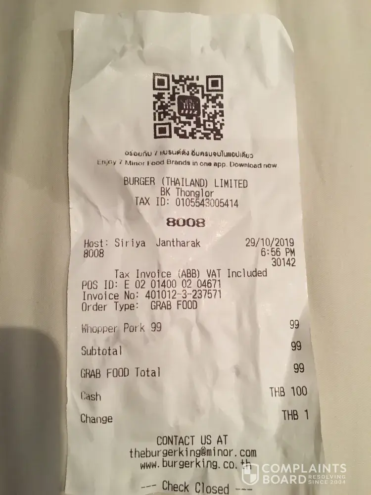 I have sent few e-mails to Burger King Thailand but no response at all. We are not asking anything just need an explanation.
