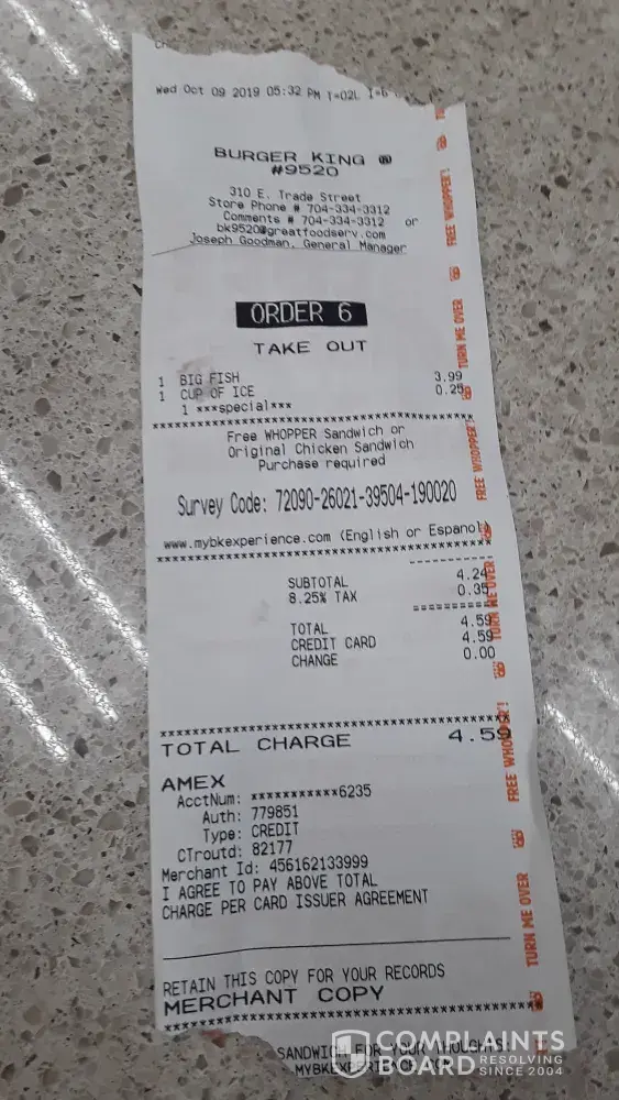 I use the Burger King at 1105 Second Street, Brentwood, CA 94513. The receipts received have been unreadable for months. I have complained but employees have no control. The receipt is readable for 3/4 of the width, but never shows charges or totals. I normally pay by credit card and receipts are important to insure proper & legitamite charges. I am beginning to think this may be on purpose for either tax reasons or to deffraud the public.