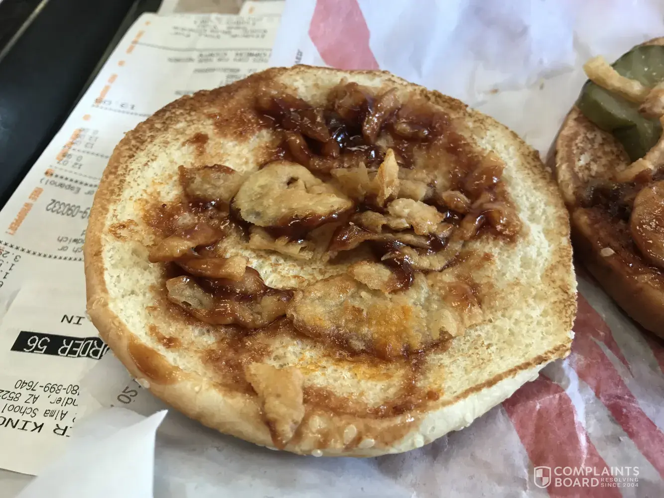 I went to a Burger King in Chandler AZ today on Alma School and Elliot roads. The picture sure looked good and an online review said it was legit whopper sized. $6.50 for this sandwich. The pictures speak for themselves. I attached your ad and what i got inside and out. You can see i did not scrape any off the bun as no sauce can be seen on the bare spots. Needless to say, extremely disappointed. Not sure i would want a coupon to go back to be honest.