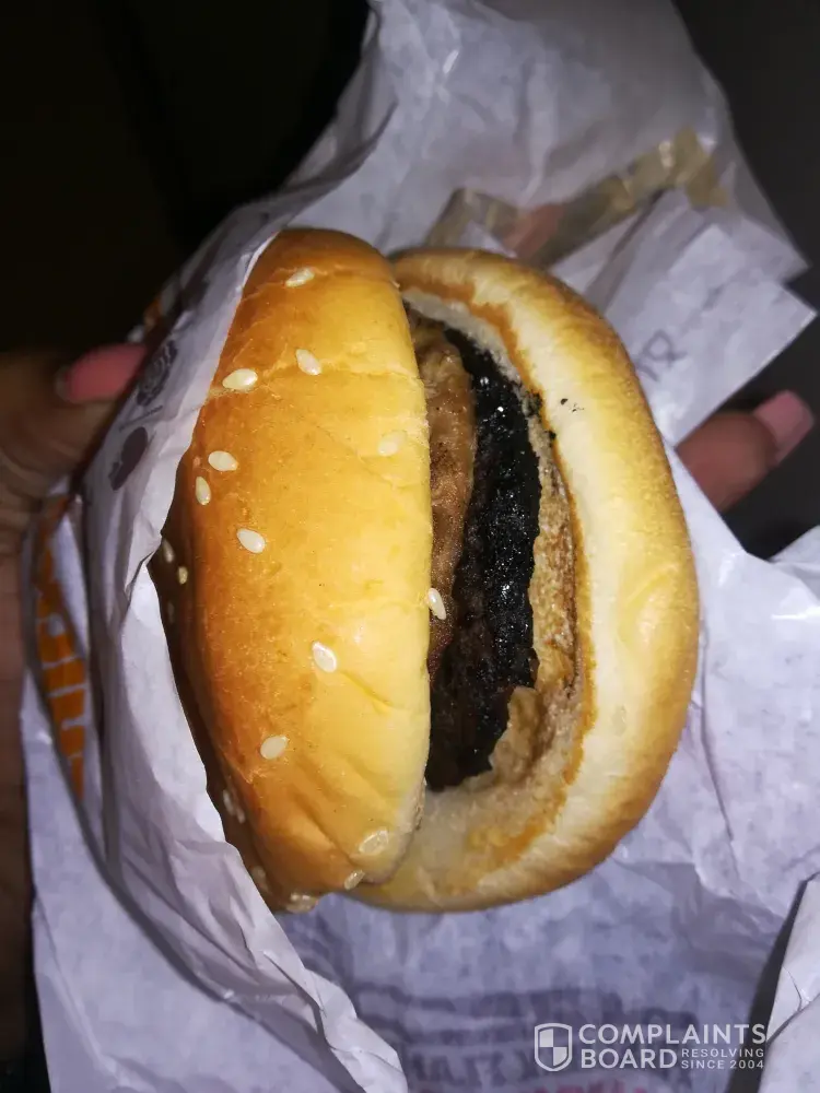 Am so disappointed on my burger I perched in burger King Pavillion the burger was burnt it was a horrible meal and because it was so busy and my lunch was almost done to return it I had to eat it was the worst meal ever. If they can advise managers to check on the food they giving us. It really unfair to pay for a meal like that.