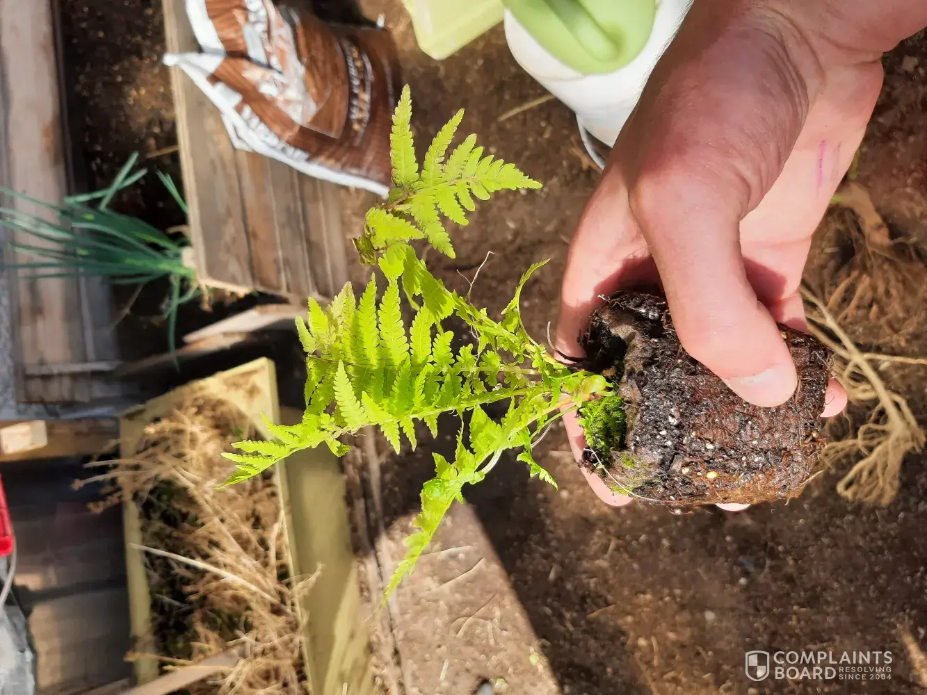 The photos uploaded very poorly because of the site. The clump of roots has an alarming amount of mold on them, the grass is stunted, and the fern is broken and rootbound. Extremely disappointing. I certainly hope the customer service isn't as poor as the rest of these complaints mention.