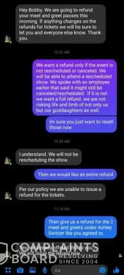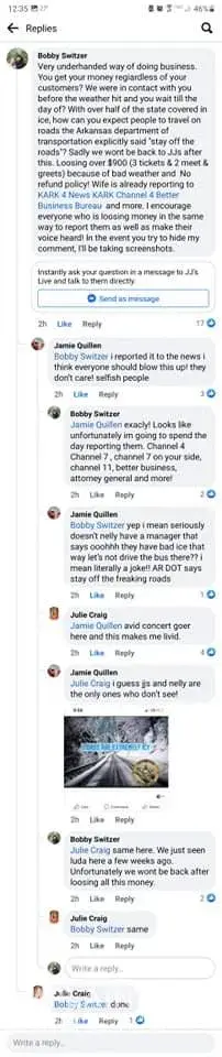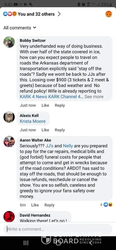 Read full complaint and 1 commentJJ's - No ticket refund from JJ's live at Fayetteville Arkansas