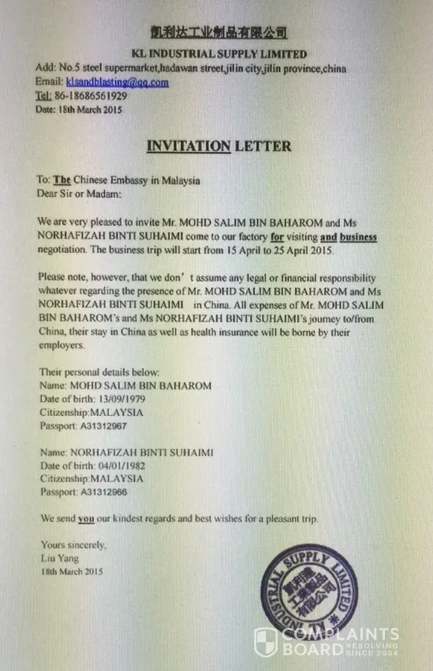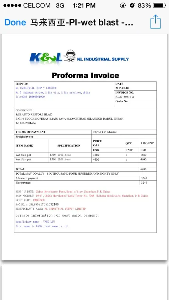 In May 2015, I come to Jilin City, China to meet Leon Liu.I want to buy a blast machine from his company.He show me the blast machine in his workshop..after I see the products and tested, I agree to pay USD 3000 as a deposit for them to make the machine for me.. In June 2015 he say, the machine is ready for shipping to Malaysia..so I make a full payment for...