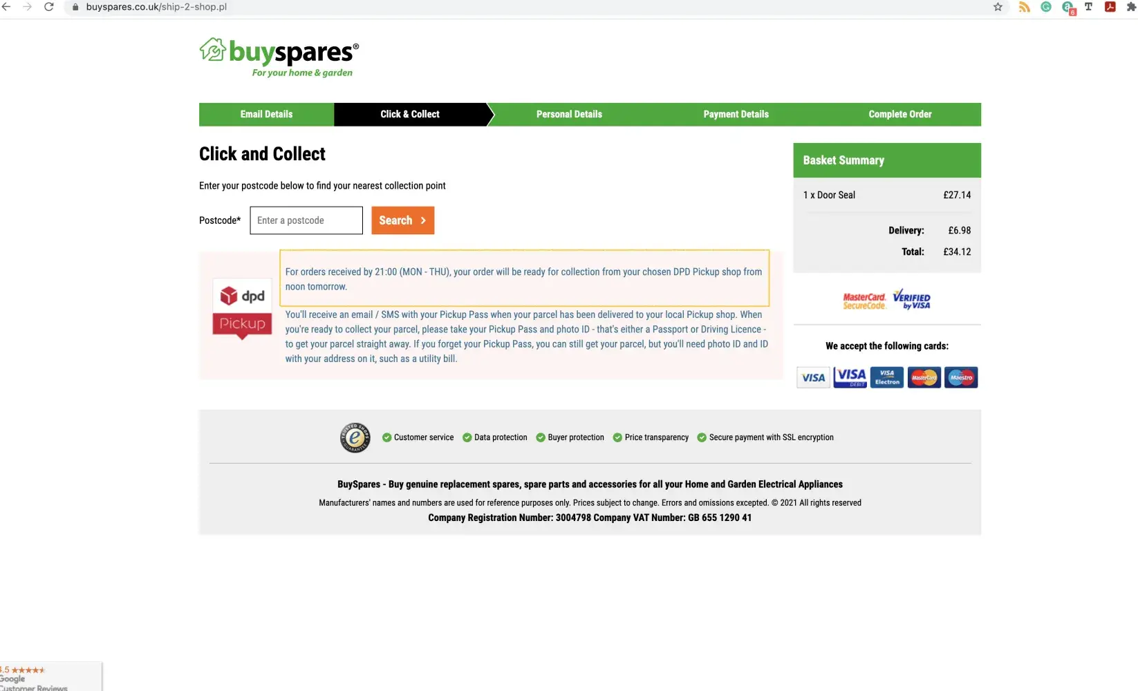 Ordered a Samsung door seal for a washing machine at around 6pm on Monday. I chose this company as we wanted it asap and on the next day collection it said order up to 9pm for next day noon collection from local dpd collection point. I checked today (Tuesday) on order status and its only processing. Went on online chat and told no its 2pm cutoff it will be dispatched Tuesday for Wednesday delivery. I pasted the text and said I can send screenshot, they weren't interested and just kept saying 2pm. Didn't offer to sort the misleading text on their website. I got disconnected on chat so went back on and got a different rep name, they said they had to change the cutoff to 2pm on the day I ordered surprise surprise, but funny how there are other reviews on Trustpilot also complaining of the 9pm cutoff being incorrect and misleading. I asked for goodwill for the misleading incorrect website text and told no they clearing state its 2pm cutoff. Total scam! I then asked to change the dpd collection to home delivery as same price and going to be the same delivery date now and they say they can't. I asked for this at 11:30am so if cutoff is 2pm for delivery then there is 1.5 hours before dispatch so they could of changed the delivery address. Can even do this once the courier has collected.