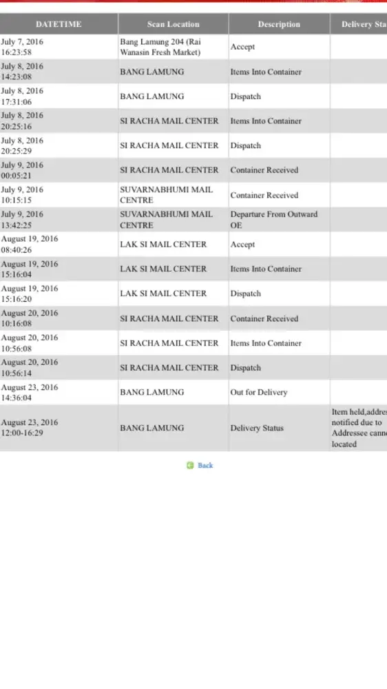 tracking number. When checking the tracking web site it shows the item has not left Thailand. After 10 weeks still no delivery and they no longer reply to emails.