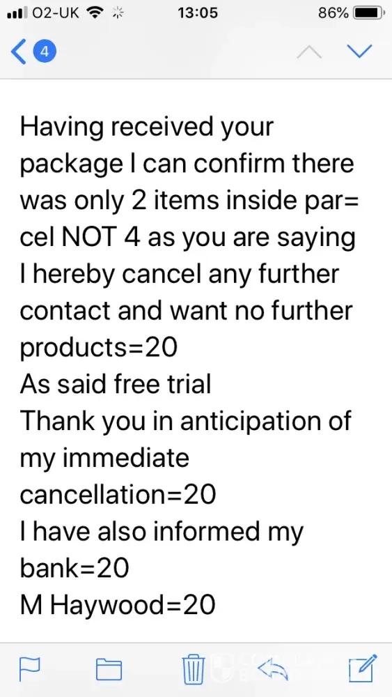 i sent for free trial said postage only £4.99 i got a bank statment and discoverd they taken £89.99 and another £79.99 i did not outherise this to taken