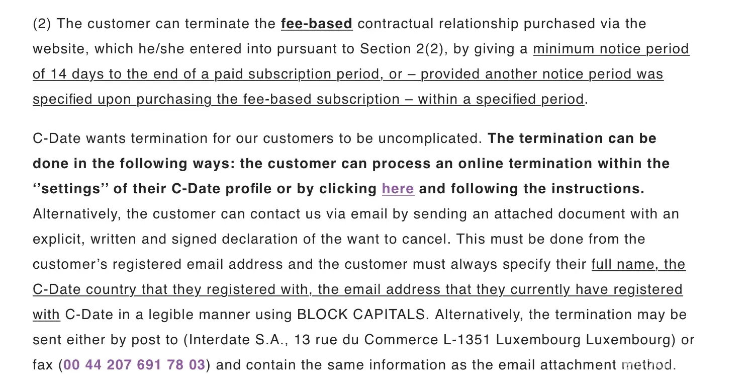 I subscribed to a trial period for C-Date as it was advertised as a legit and successful dating site. The initial trail fee was £2.80 but as I went through checkout I was charged £9.90 this was the first red flag. Upon accessing the platform, it became immediately obvious the accounts are fake and the whole thing is illegitimate. As I was annoyed at the misrepresentation of the website I sought to cancel my membership. Section 6. (2) of their terms and conditions clearly state fee-based members can cancel their subscription with a refund if the withdrawal of contract email is sent within 14 days. They have a free template on the website to use, which I did on the same day of subscribing. However, after reading reviews it became apparent that this was a scam and the countless other victims all said they tried this step with no success. They all say they eventually get charged obscene fees and have debt collection agencies harassing them for unpaid fees. I immediately reported this website to UK Fraud & Cyber crime and reported it to my bank, but I now worry I am stuck in something I cant get out of and that is only going to hurt me