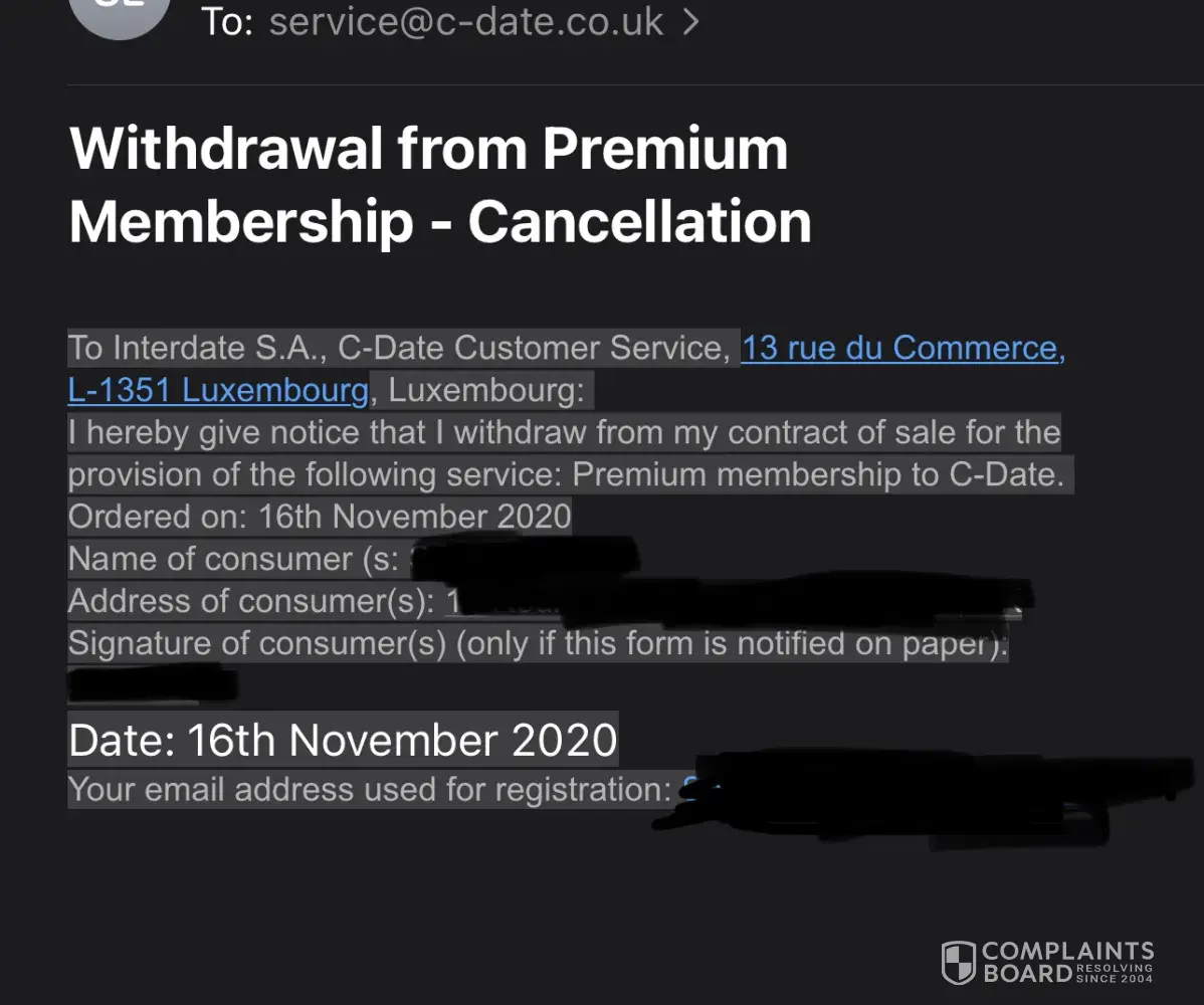 did these guys on Complaints Board make them cancel for you or was it your own process. i've sent C - Date the cancellation form but yet to hear anything to their service email address. the fax number looks fake, and i suppose i could go down the postal route but it will take ages