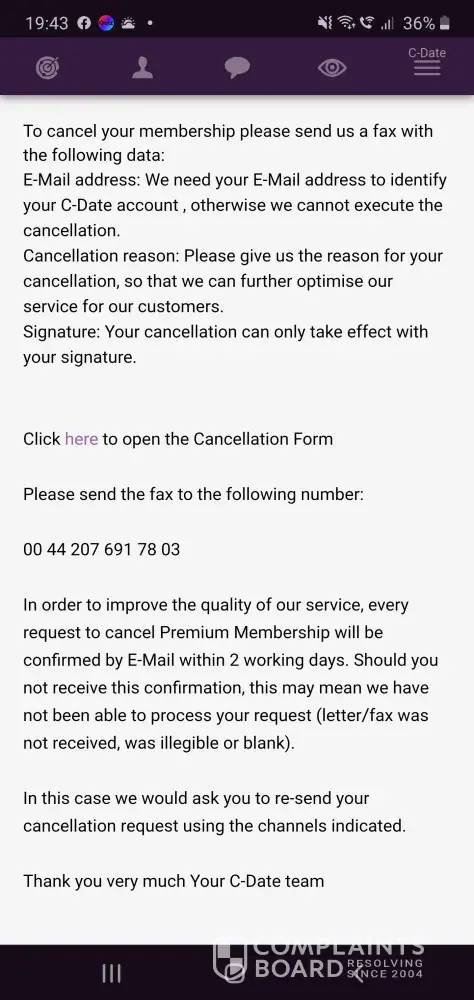I have emailed both [protected]@c-date.co.uk and [protected]@c-date.com with 'Complaintsboard.com'