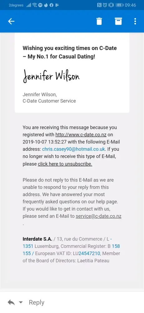 Hi everyone, DON'T Don't JOIN CDATE, you cant unsubscribe, they tell you you have to have proof of unsubscribing, which of course you can't provide, as they don't confirm. then they add on more and more costs, pass your details to more scammers to try and get you to pay'