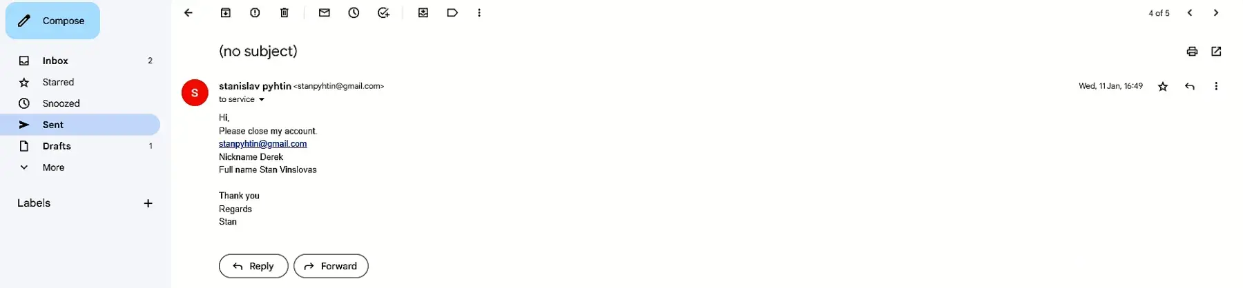 Desired outcome: Cancel account and stop sending letters