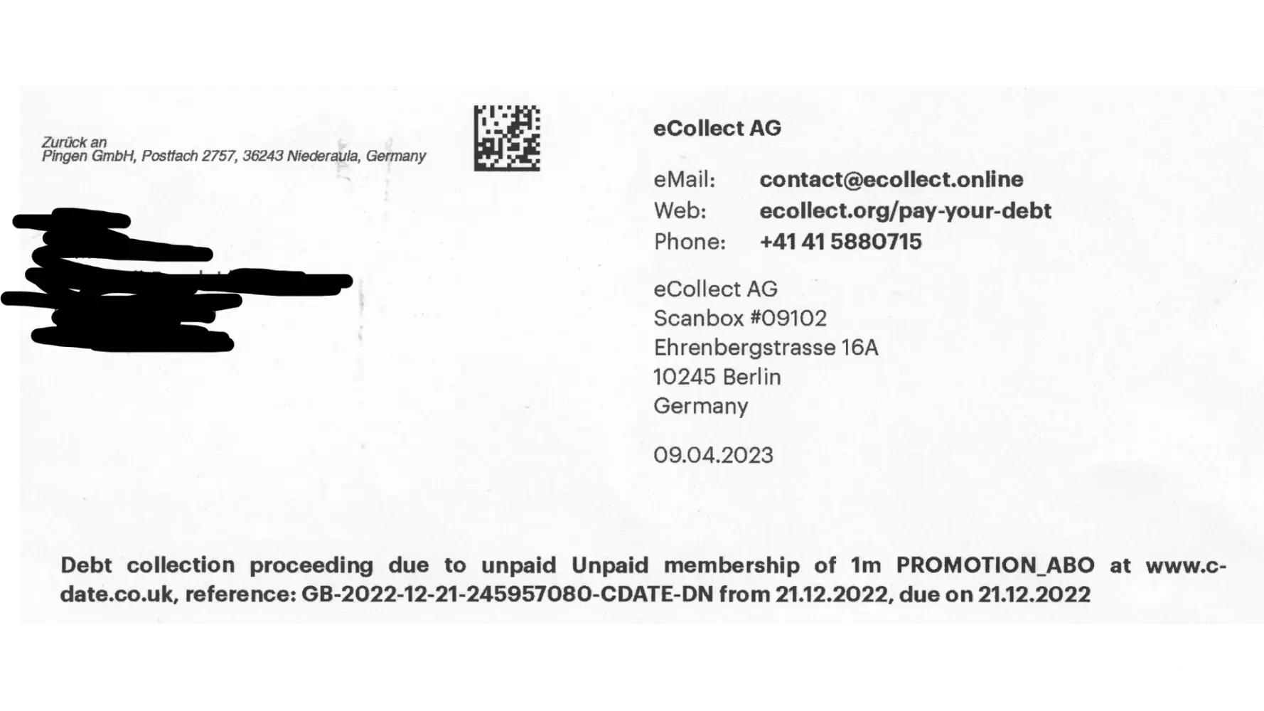 I joined this website a year and six months ago, now I am being chaise by a debt collection company in Germany. I tried to cancel my membership on the app, which was impossible, so I wrote to them via their email which was advertised on the application, but now they are saying the email was incorrect. The whole experience is a dreadful. I did try to make a payment to a Ecollect yesterday, but it failed. I am worried that Ecollect are a scammer. It feels like a scam business.