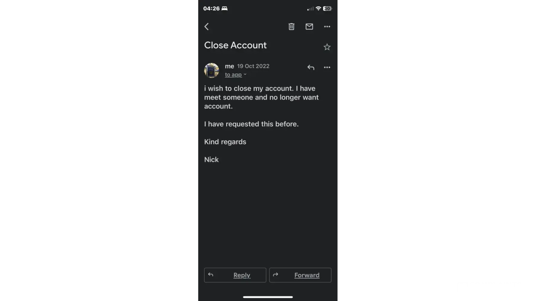 I have requested you close my account, with hand written letter as in your instructions on your terms and conditions.