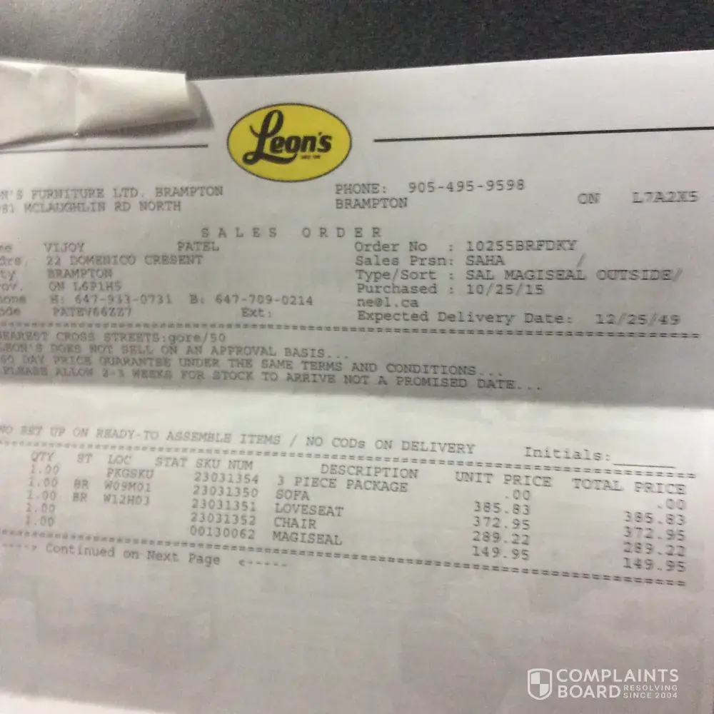 Leon's Furniture reviews and complaints 3