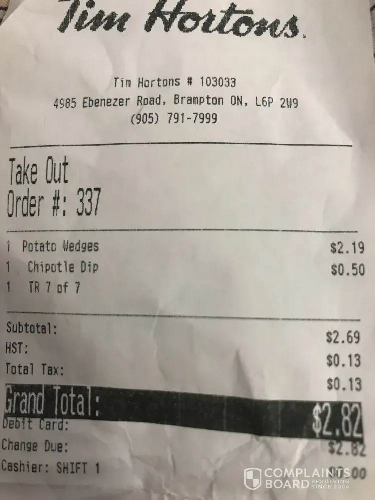 Tim Hortons reviews and complaints 3
