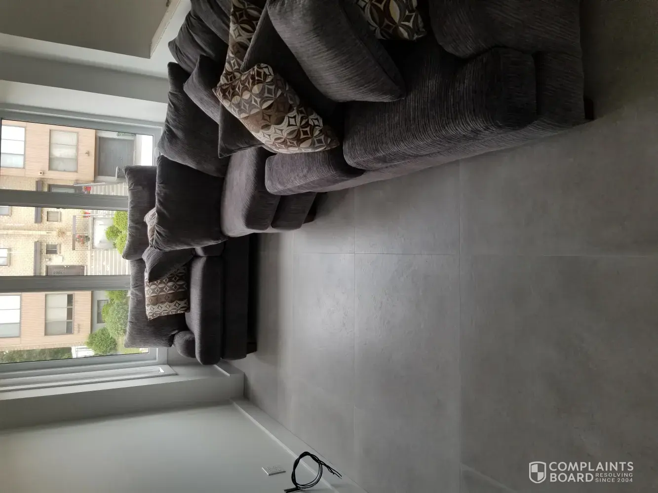 The Brick - Peeling of faux leather sectional sofa and sagging in seat. (broken springs)