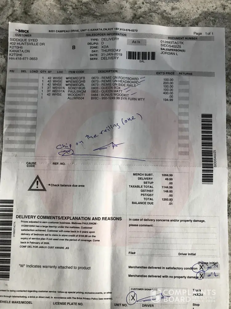 The Brick - damage during delivery and no resolution
