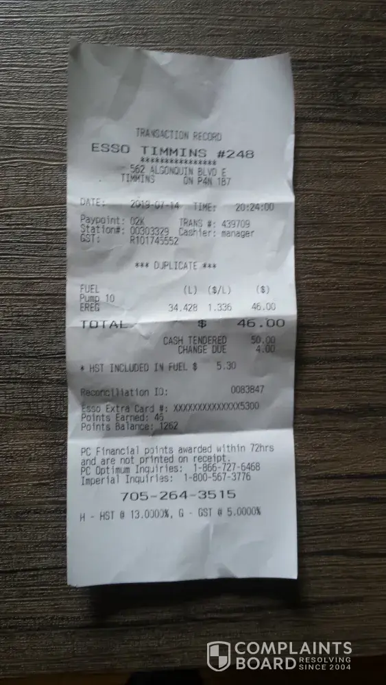 Not to happy about this. I went inside and explained it to the casheer. He said not to cancell my Esso card or anything related to it but instaid to contact Esso. I did phone today but was on hold for @ least 5 minutes.