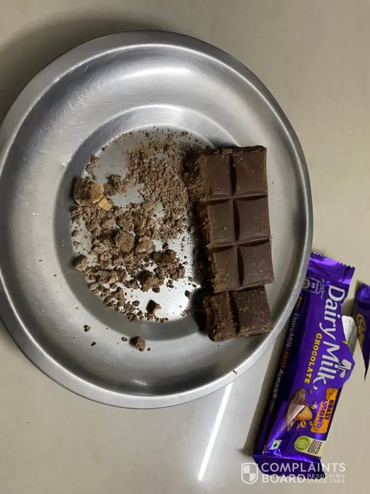We found the chocolate broken in the form of powder in one side when opened the wrapper. Looks like some quality issue with the product.