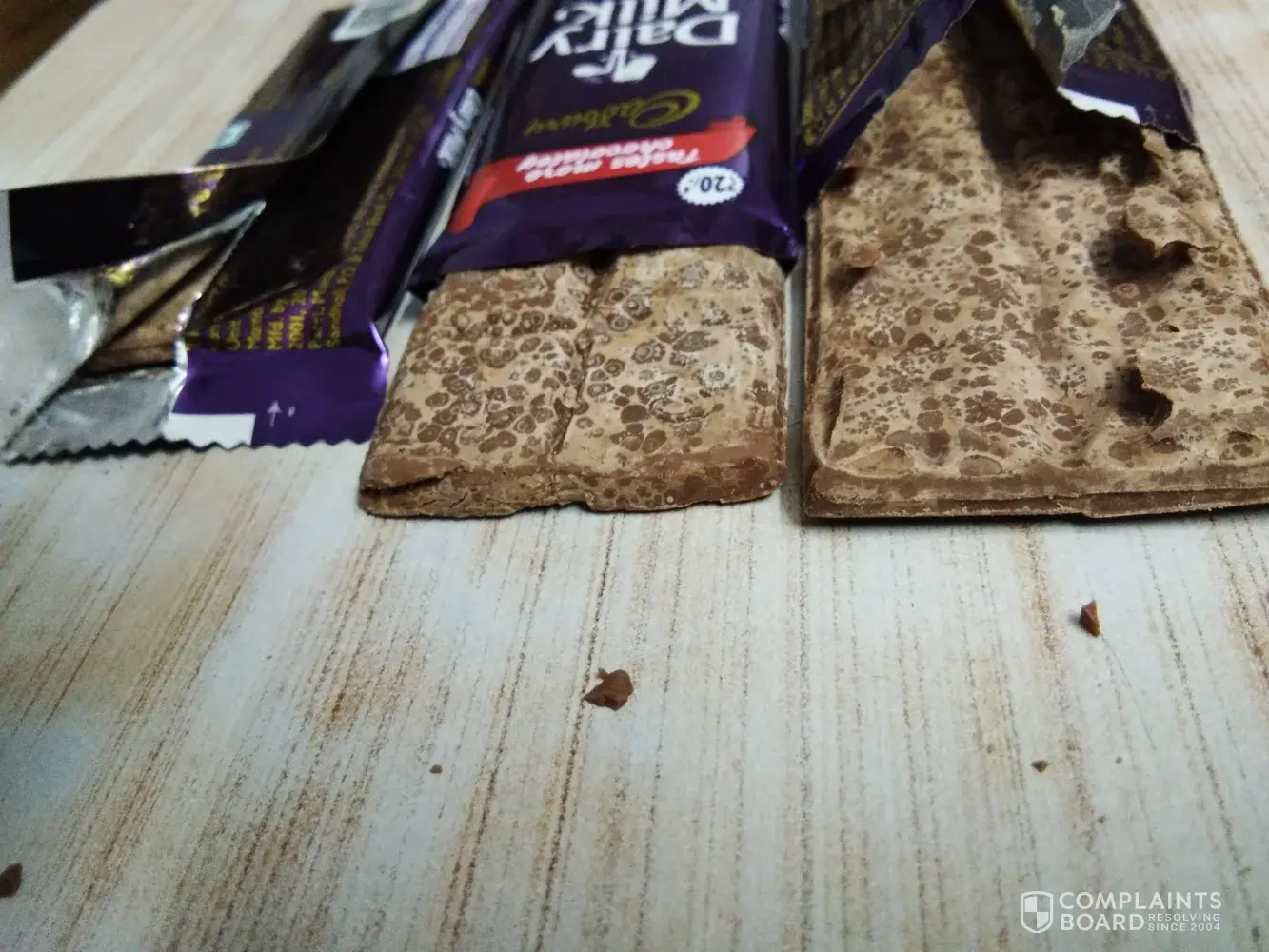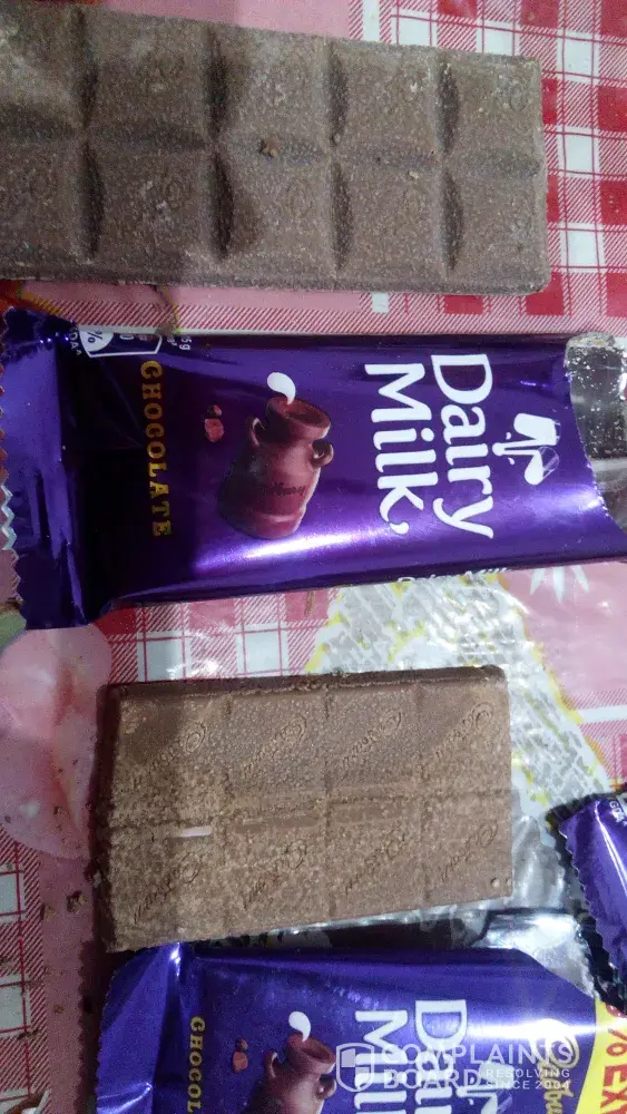I am sending you the pics of dairy milk chocolate that I found when I opened the packets. I still have 2-3 unopened packets as a proof. These packets seem to have same type of condition when felt by touching fingers.