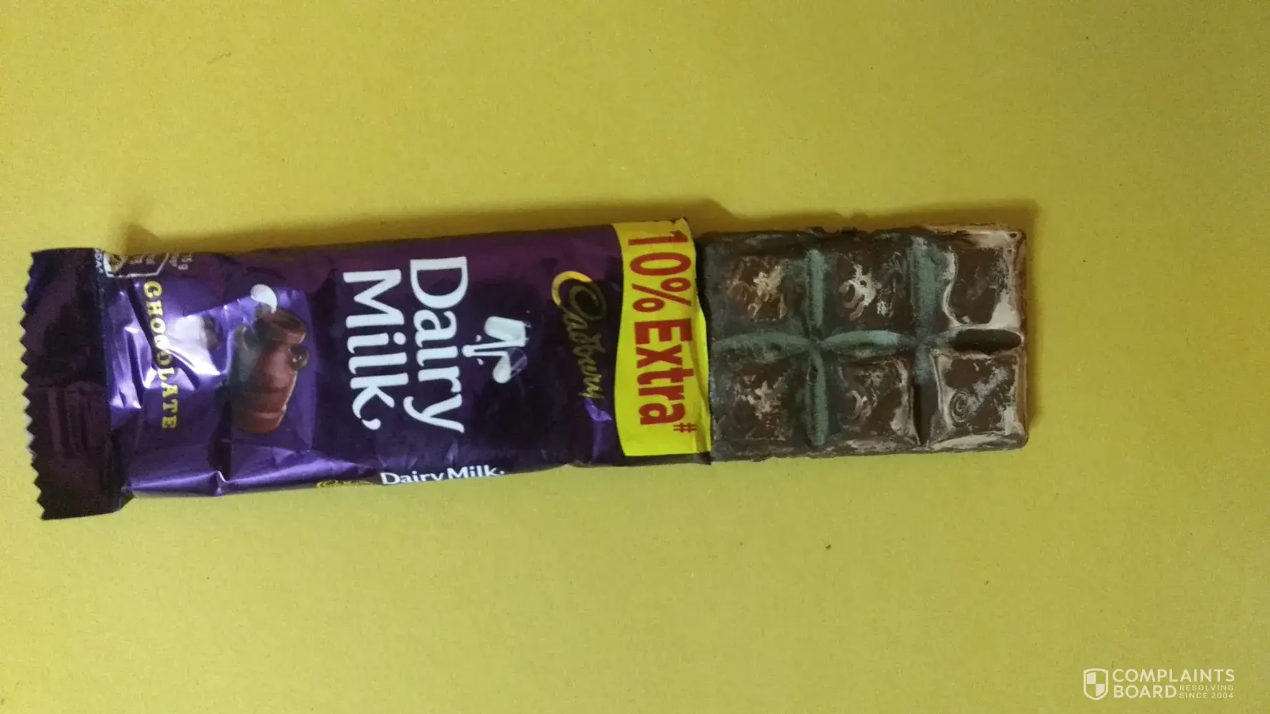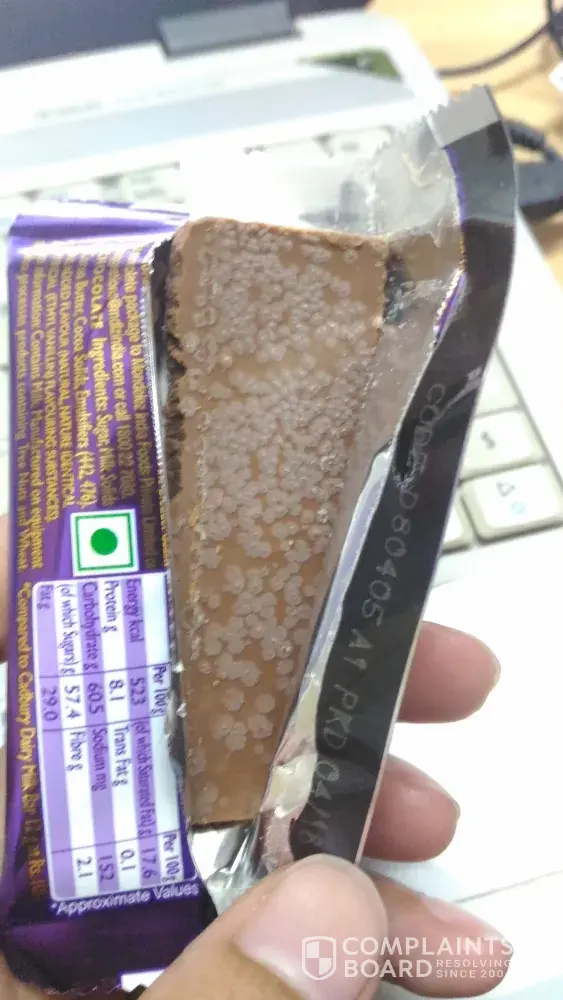 I am a evertime admirer of cadbury and its all products. but it is very much dissaponiting these days regarding the cadbury chocolates as it happened to me last 3-4 times. I bought a cadbury dairymilk yesterday. When I opened the sealed packet which was not expired, I was shocked to see fungus growing all over it. It was really a bad experience. kindly have a look on the attached pic. I would appreciate if you pay attention to these stuffs.