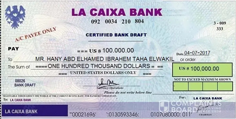 My 1000000 check cant get it from the bank i just have check copy not original copy and certefecate proof the chech