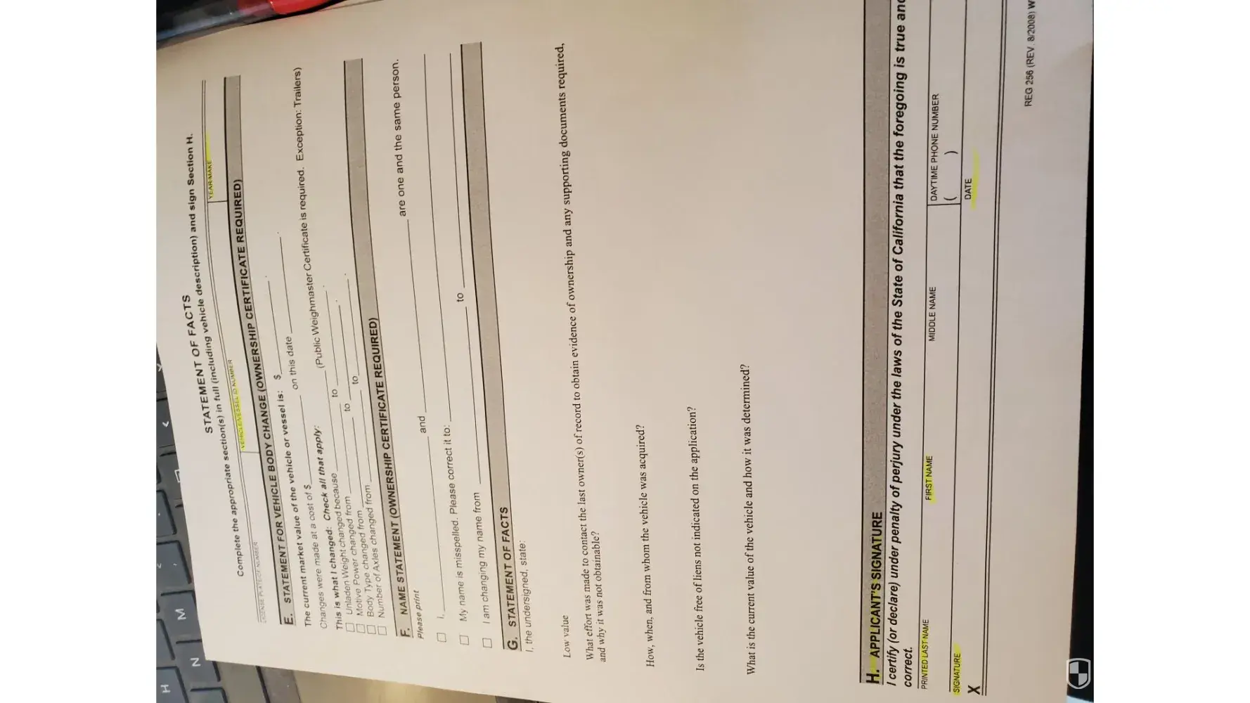 I have been to the Hemet DMV sending my records in trying to get my motorcycle registered, Since September 2023 this week will be my 9th time back and 5th time submitting new documentation long with copies of all of the previous documentation; yet my fees were paid the first time I entered the dmv. 197.00. Here Jan 2024 no plates or title but yet another form to complete. I have provided a REG 343, a REG262, a REG256, letter from manufacturer regarding the emissions label that is missing. Vehicle registration has been provided along with Vermont dmv statutes for Honda rebel 250 cc motorcycle does not have to have the title to register it since it is under 300 cc. Mind you this is a 2002 Honda Rebel 250 that sat in a garage in Vermont since 2002 it barley turn 6k miles when I drove it home with no plates because DMV gave me a red sticker in November2023. the sticker was not engraved I was instructed to get a label from the manufacturer; they sent a letter and stated we get these quite a bit and a letter should suffice. Now California dmv wants a statement a statement of what. state it came from Vermont , You have that information and the plates What efforts have been made to get the title the person who sold it to me? The owner completed and gave me a statement REG262 with the exact same questions for me to answer on this new REG256 form. I just want to get the plates that I paid for. I bought a bike tried to register it California is refusing, to register. This literally is weaponized bureaucracy and biased at its best and I work for the state of California. No wonder so many of us native California's just want out and away from this state. Please help me understand this madness.
