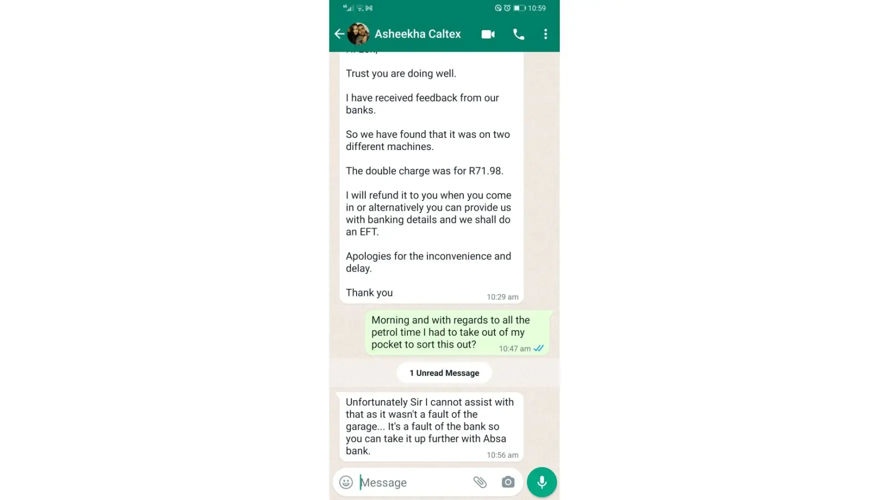 Good day I have a continuous problem with being double charged at caltex Blair athol in westville I had to visit the branch 5 times and at my own expense. My expenses and time amounted more then what I was charged for. What's even worse a massive multi national company like caltex expects the customer to go and fight for them with the problem they have with their bank. Does caltex not have the resources to take on absa and protect their customer. I have been up and down so many times and I get zero understanding and sympathy it's completely shocking