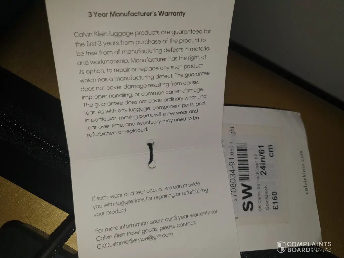 I purchased ck traveling box in 2019. The box is brand new unused and the outer material started coming off . I Contacted calvin klein and after so much back and forth, from requesting for photo evidence in different angles, receipts and all .They refused to honor my claim citing product out of guarantee which is false as it has 3 years guarantee from date of purchase and still very much within the warranty period.