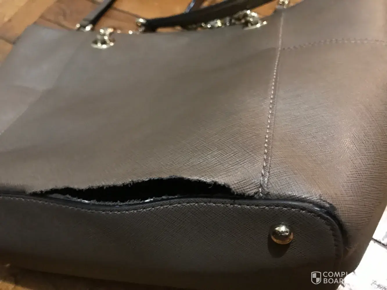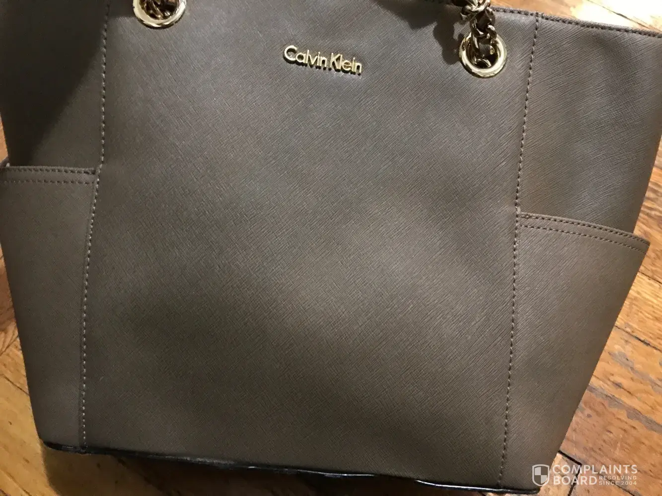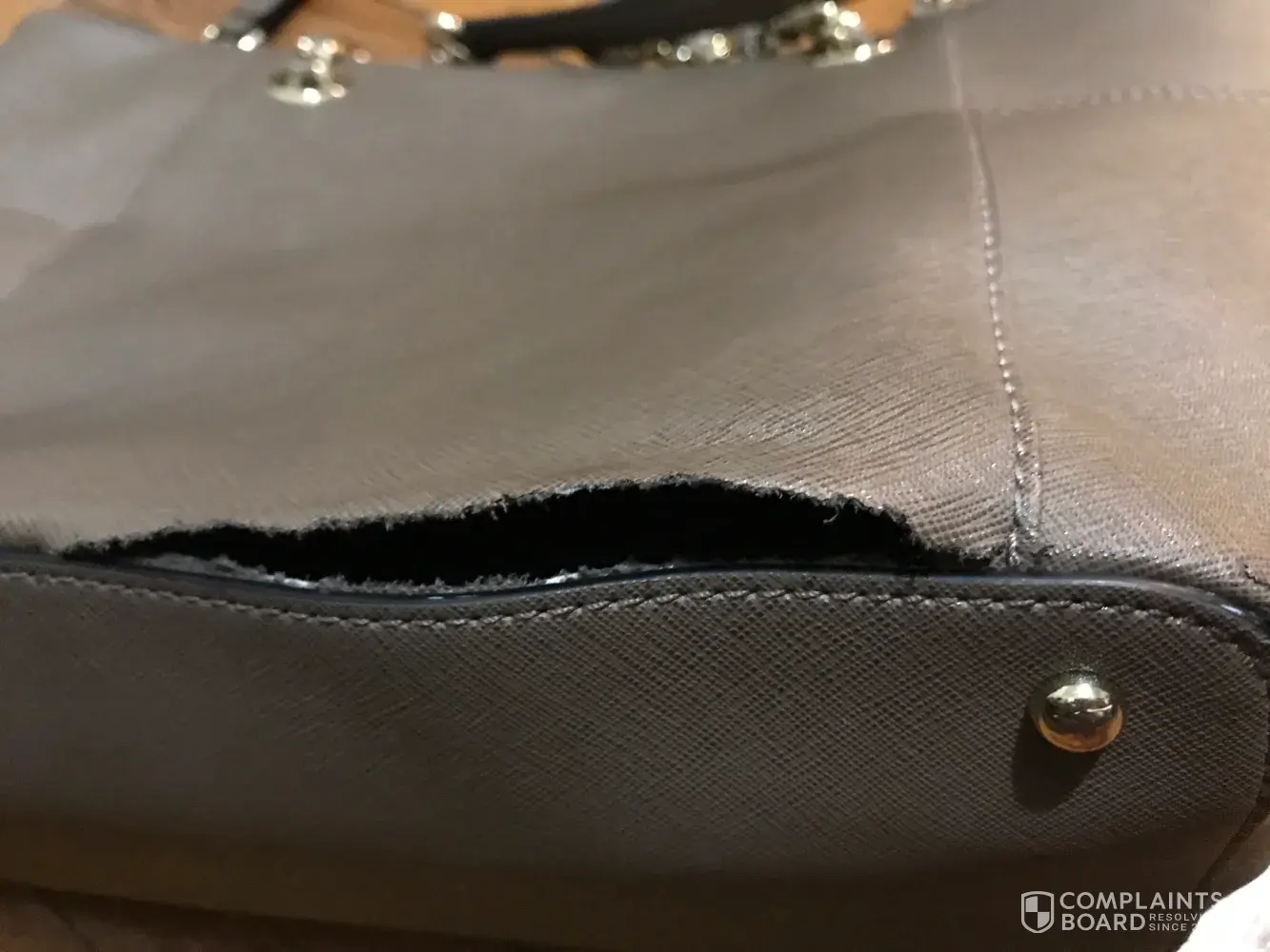 Around the beginning of December 2016, I purchased the Calvin Klein Saffiano Leather Chain Tote from Macy’s in dark taupe. I was so excited to purchase my first designer bag. Once I saw a sale, I jumped for it and purchased this bag. Upon receiving it, I noticed that the shape of the bag wasn’t study and it looked a bit worn. However, I thought this issue would resolve after placing daily necessities (wallet, pen/pencils, a notebook, a folder, gum, etc) and after some wear. Although the issue never resolved, I disregarded the shape because I loved the bag and it was cute (received tons of compliments on it). A month after purchasing it, I started noticing a rip on the bottom of the bag (where the seams are). I bought this bag to wear once in a while, so I was surprised to see the rip. A week or two after that, I see another 2 rips, but on the other side of the bag! In order to piece my favorite bag together, I purchased good quality fabric glue and allowed thosebareas to dry for 24-32 hours. A few months later, this bag just keeps ripping! This rip is even larger (shown in the pictures below)! I am so disappointed in this bag! I expected to receive a good quality bag that Calvin Klein is known for. Now, I just feel as if my money went down the drain with how quickly this bag deteriorated.
