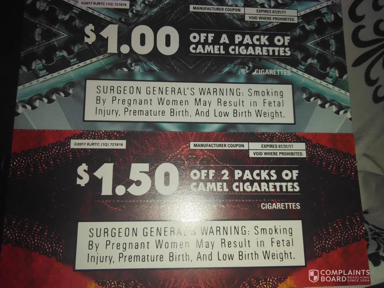 I have been a camel smoker for many years and I have been disappointed with the online site for the last 2 years. I use to have fun everyday in the site but now it's DULL with a huge capital. I have received 2.00 coupons for a pack every month till recently. The dull website is very disappointing to were there's nothing to do. I'm ashamed of the cut back and the dull camel site that makes your cigarettes unappetizing. I have received my cigarette coupon again and I have been shorted from my choice I chose on line. Who is running a lie I should get 2.00 off a pack is what I chose. Instead I got the beginners coupon 1.50 off and 2 packs for total off 1.50 which makes it worse only .75 off. How disrespectful to lie and cheat loyal customers for whatever reason is not acceptable. I'm not a happy person and I'm sure others feel the same way.