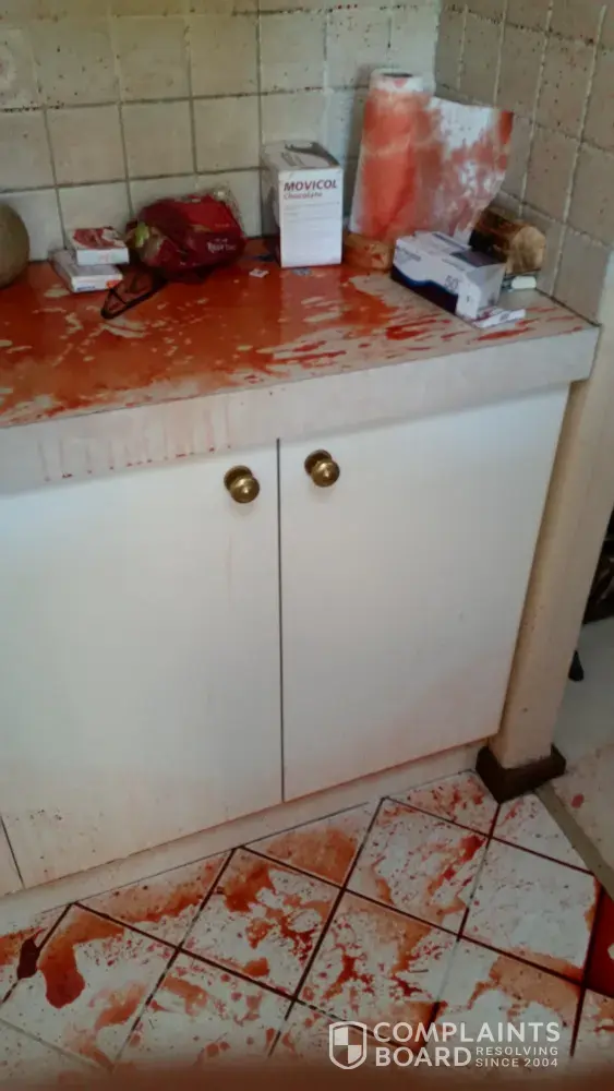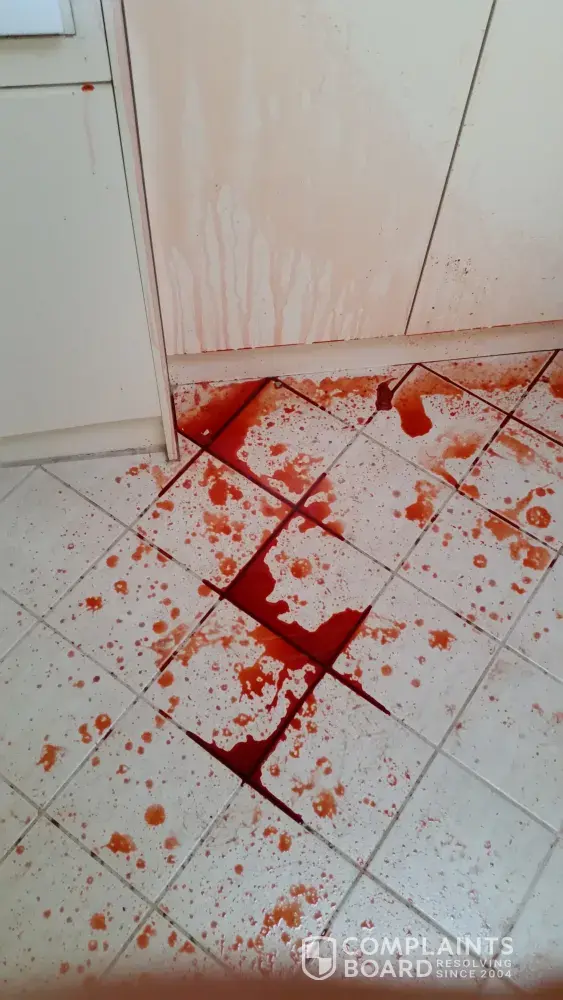 The liquid has stained all these areas, and while I have attempted to clean up have been unable to remove the stain and to eradicate the colour from the areas affected.