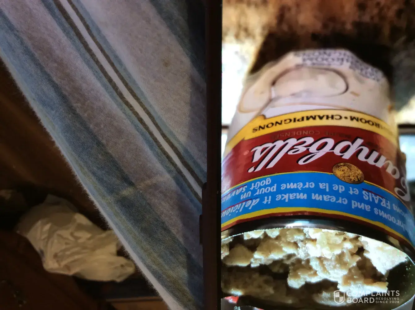 I was about to make my grandchildren their favourite cream of mushroom soup for their lunch. When I opened can what I found was big brown chunks of what was suppose to be cream of mushroom soup.