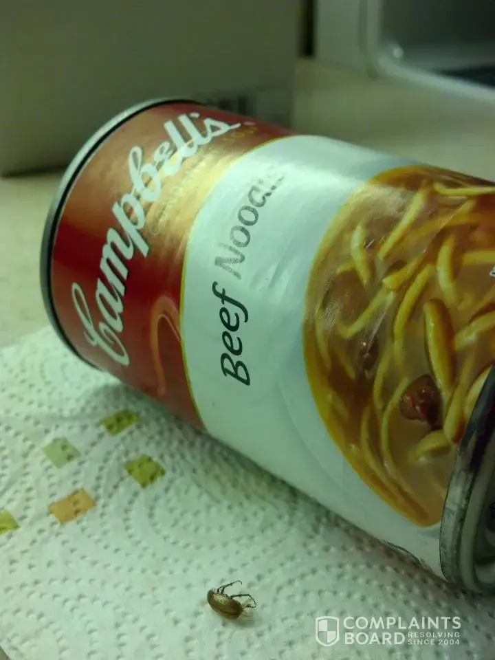 So back on january 5th, 2010 I was enjoying my favorite soup, the creamy chicken and dumplings soup. I noticed something in it which turned out to be a beetle. Brown and abot 1/4"long, 1/8" wide. I called in and was asked how I had prepared the soup, if I had eaten it (sadly, yes) and would it be okay to compensate me. Seeing that I was out my $1.50 for the soup I said sure. I got an apologetic letter and coupons from them.