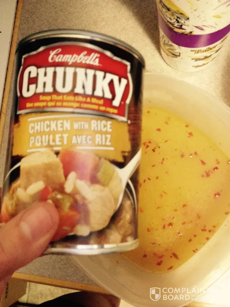 When I opened the can of campbell's chicken gumbo lite soup, I was horrified. It was all water with no broth and chicken, just a bit of rice. It tasted horrible and ruined my casserole. What's worse, is that I called the customer service phone number listed on the can and I was to be chared $3.75 just to talk to them! How outrageous and what extremely poor...
