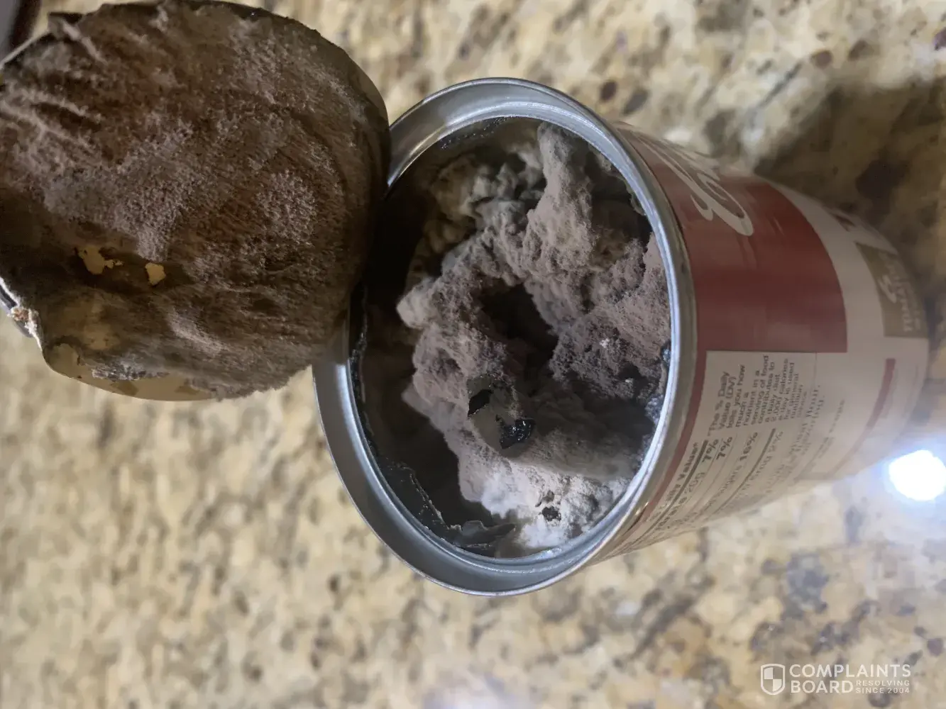 We are sorry to learn of your experience with our product. From your description it appears that the can may have been damaged or stored improperly during shipping. This may cause your product to get moldy. If we can be of any assistance, please call our toll free number, [protected] between 9 and 7 EST.