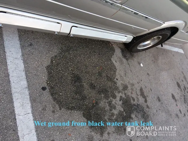 Feb 15, 2018 we are now in the Great Cyprus Park. There is a very strong urine smell around our RV. You can smell it 100's of feet down wind. This is very embarrassing! Reservations for this trip were made a year in advance so we are on a tight time schedule if we have to cancel we will be charged a fee. I called Camping World to speak to a service manager. I spoke with service manager Johnathan he knows of no one personally on the east coast that he can recommend for repair. If we get the repair done, send him the invoice and he will reimburse us. So we are on our own. My self and another camper blocked one side of the RV raising it 6" which allowed him to get underneath and see what was leaking. He found the cause a large rubber boot was loose and the clamp was not tight. Since then no leaking.