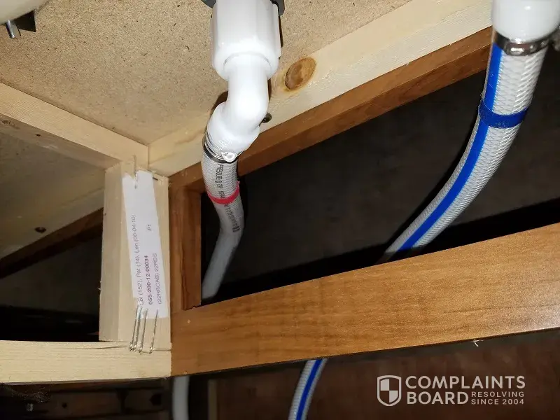 ** Just wanted to give an update and request an emergency repair on the outdoor kitchen which has sprung a leak. We noticed it this morning when there was water on the floor beside the tub, after investigating found the water leak to be the hot line on the outdoor kitchen. As you can see in the picture it is leaking from where the flexible hose connects to the 90 degree elbow. We request this to be fixed as soon as possible since this type of water leak will cause allot of damage if it is allowed to continue.