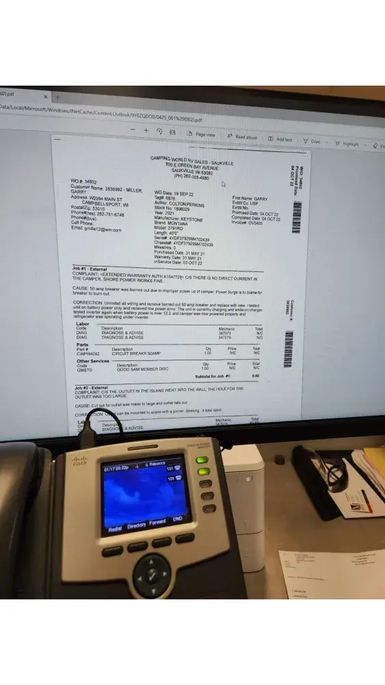 Camping World Work order and charges