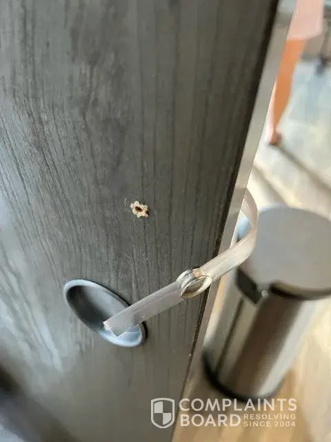 3. We opened the outside storage and the lock just spun scratching the outside of the door