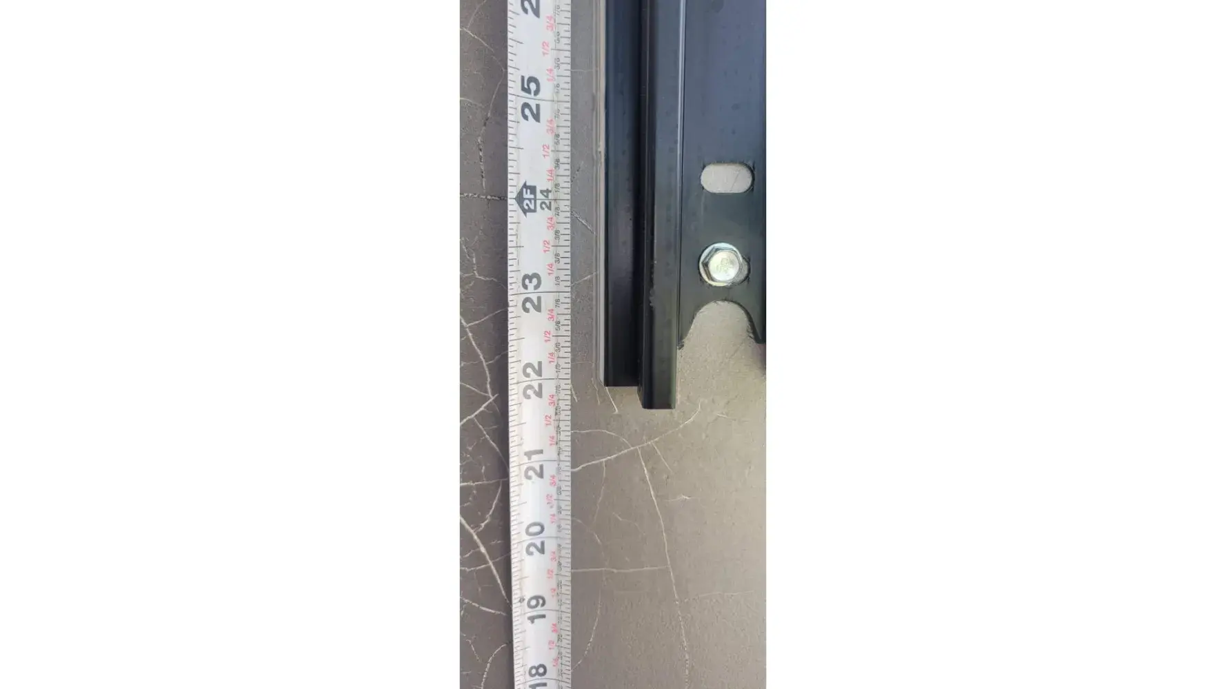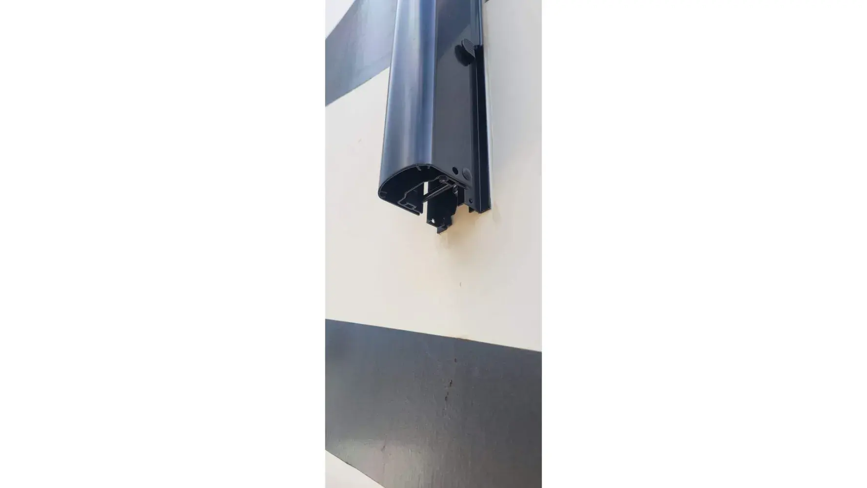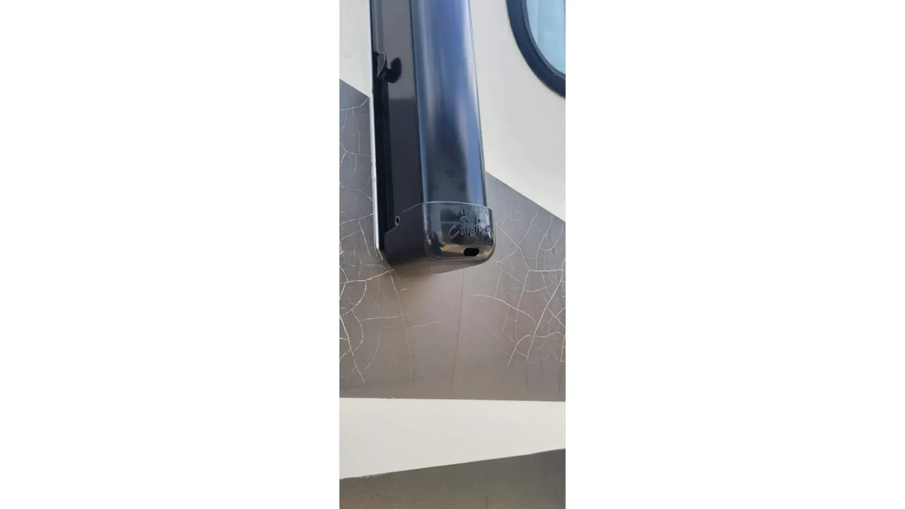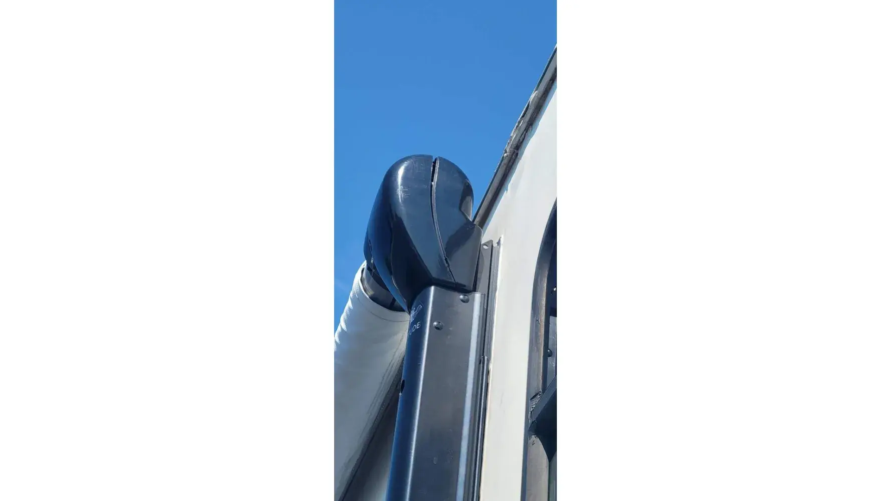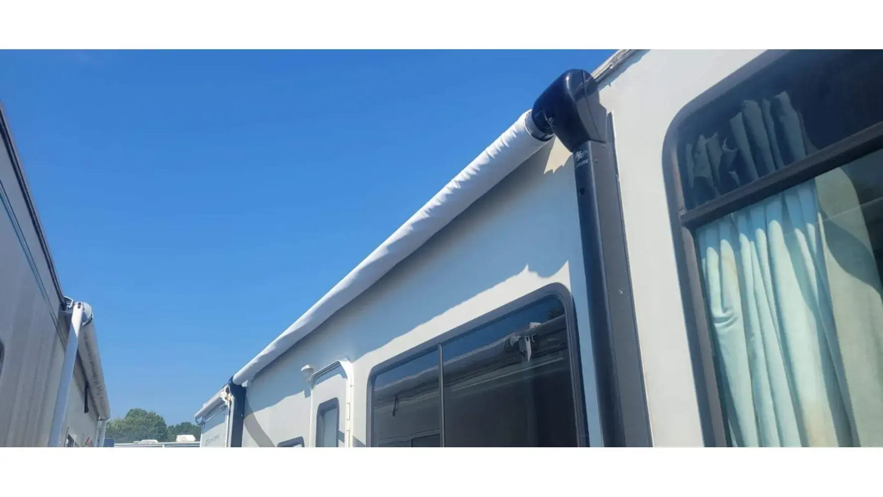 6) Awning track on walls installed crooked. 1/2" rise fall. And left Awning track cap is broken off and missing.