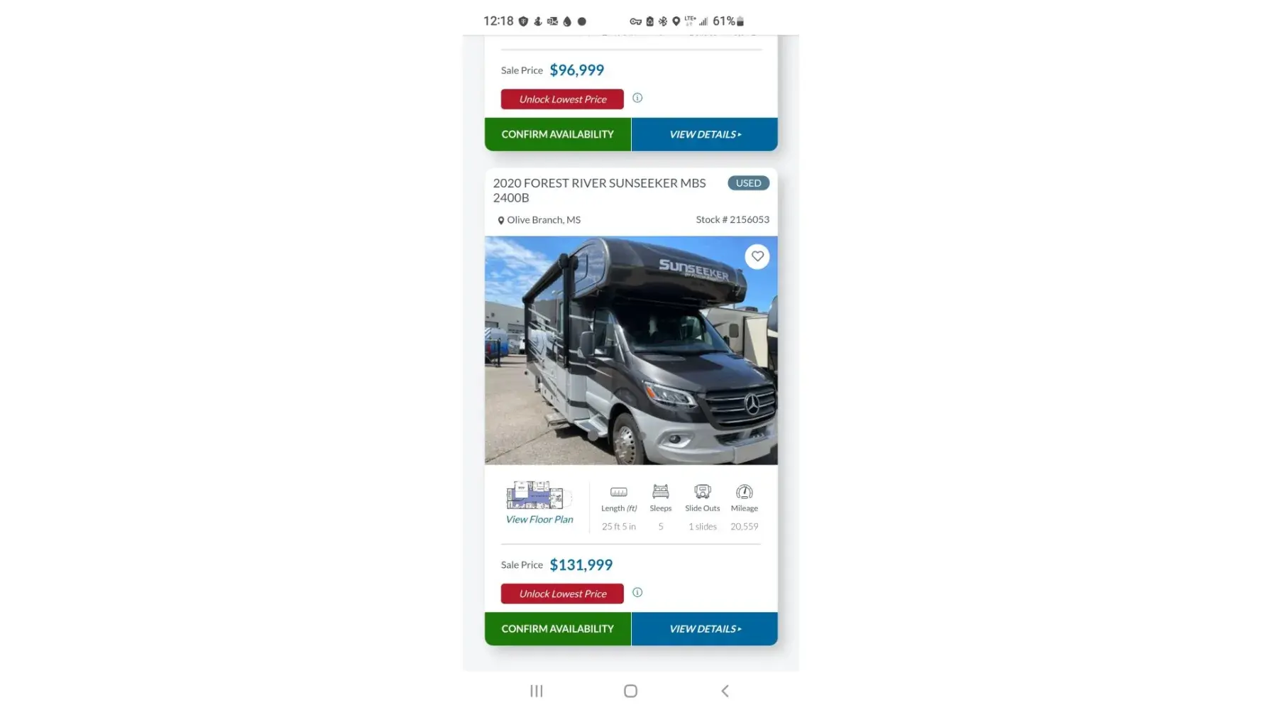 When I went into the inspection, i was advised the RV was in excellent condition. The price quoted though was $79k maximum. The $86.1k was consignment and was the NADA book value.