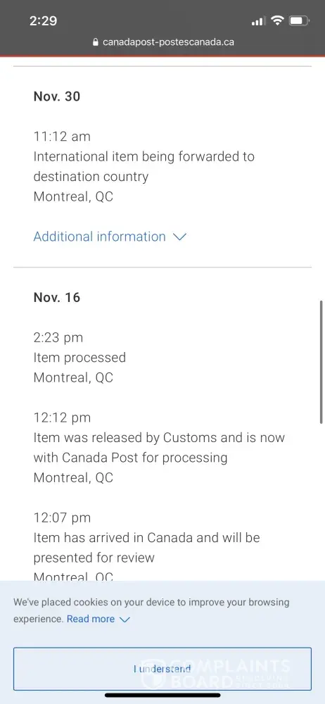 I was waiting for this package for over 2 month. On Nov 16th as per online canada post tracking system it shows that package arrived, cleared customs and processed. I contacted canada post and was assured by the employees that its coming nothing to worry. A few days later there was no update i contacted them again and they said they will creat a ticket to investigate and make sure i get it. Around 20th of nov i contacted them again and they says all fine and if anything i will get notifications via email by nov 30th. Today is dec 2 i contacted them again as I haven't receive an update and Ashley from CP told me that package was returned back to the sender on nov 30 saying it was denied by customs. They had enough time to notify me which didn't happen but promising that i will get it soon. Online it stated that package was released by customs and processed so it means they gave a misleading information either online or today to me over the phone. Now my parent have to pay money to get package back home and again pay to resend it to me. This is very unprofessional and ridiculously unfair. Canada pos kept me in the dark and now just blame customs and my family has to suffer consequences of their mistaKes….