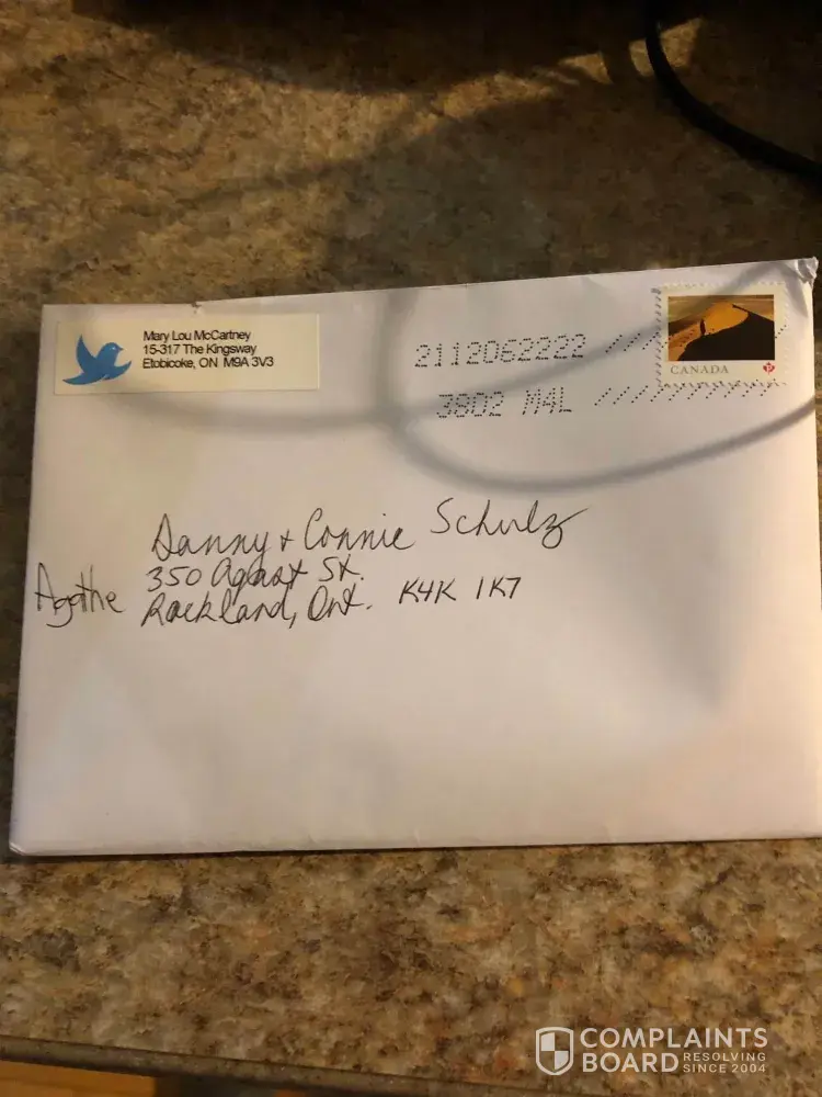 Received a Christmas card from Mary Lou McCartney from Etobicoke, ON.