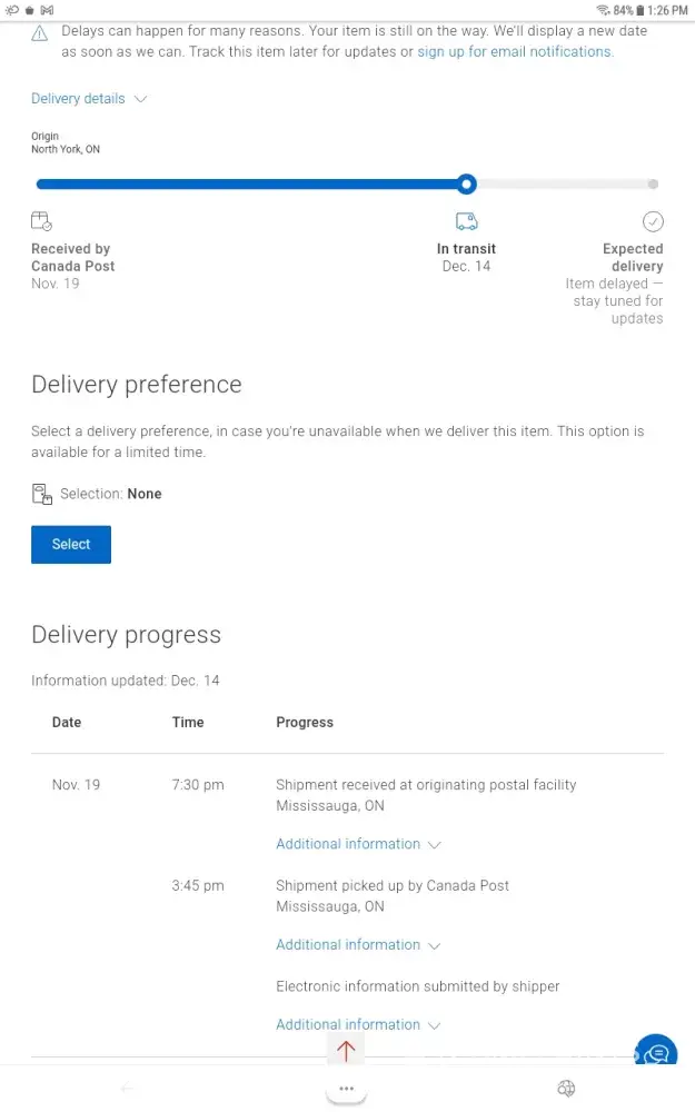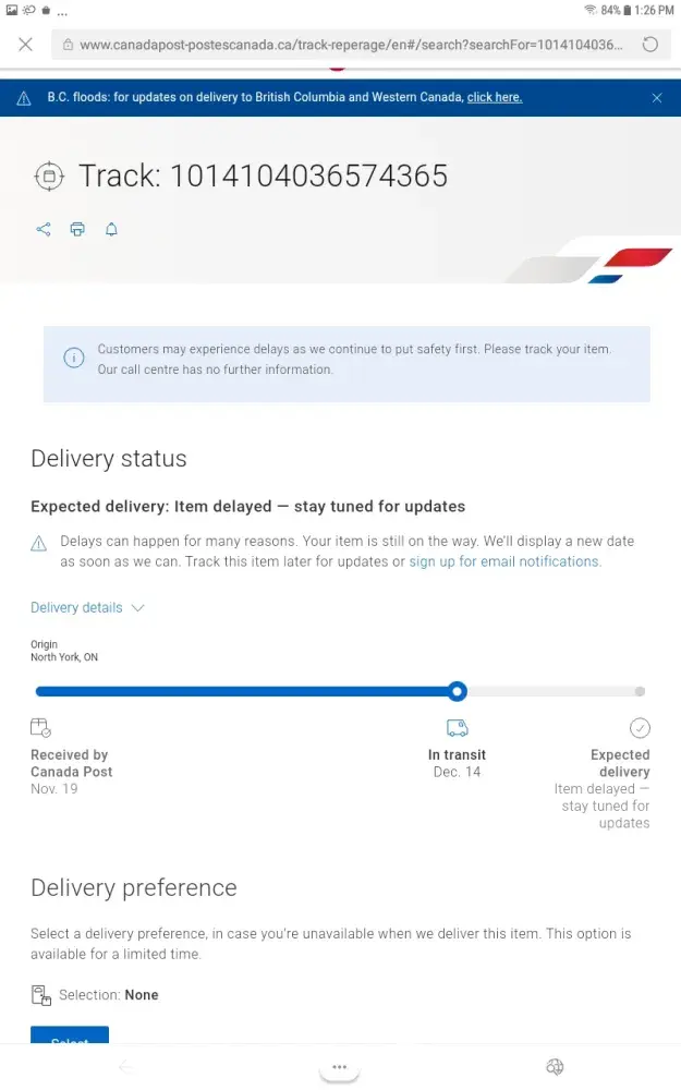 Unfortunately, Canada Post ran into an issue when attempting your delivery. They will try again."