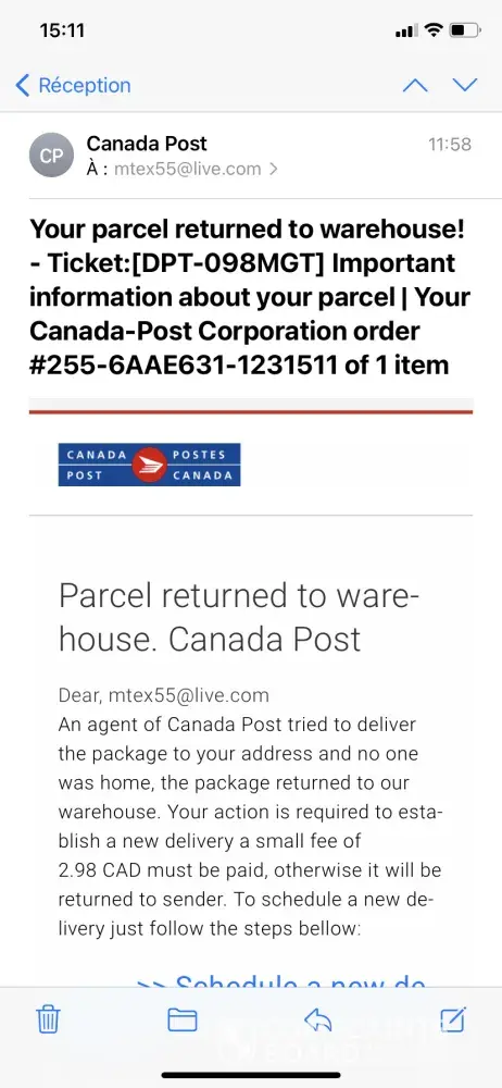 Canada Post Apri 15, 201: received letter delivered by canada post and the end of the letter has been cut open